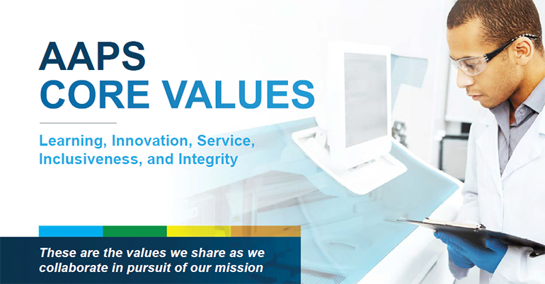 Each of these values is woven into the decision-making processes, planning, and opportunities offered at AAPS. After all, what is learning without inclusiveness or integrity? Service to others in our work and communities is an outcome from empowering scientists’ innovative spirits. And in every way, these values are integrated into membership at AAPS.